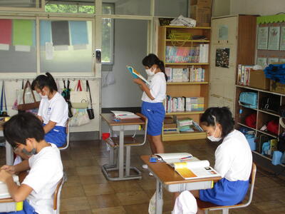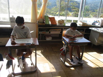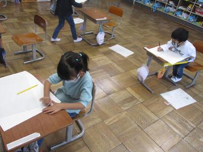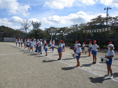 業間の時間に、運動会の応援合戦の練習が行われました。
