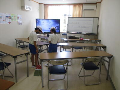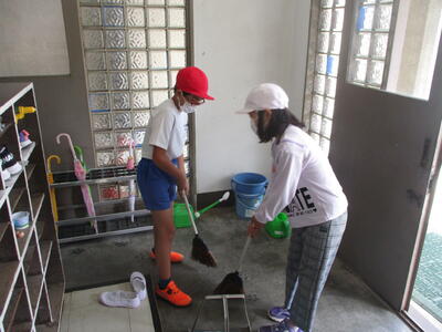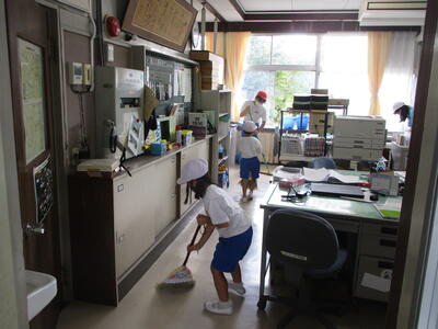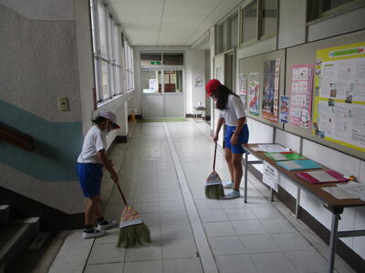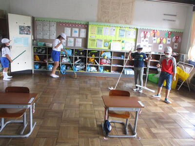 運動会の練習で疲れていても、掃除の時間には全員がもくもくと掃除をします。