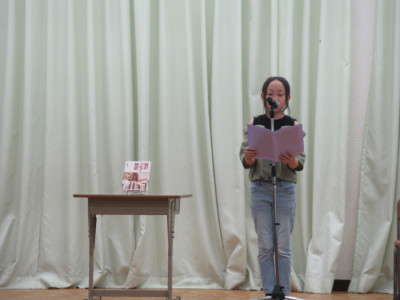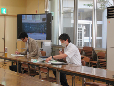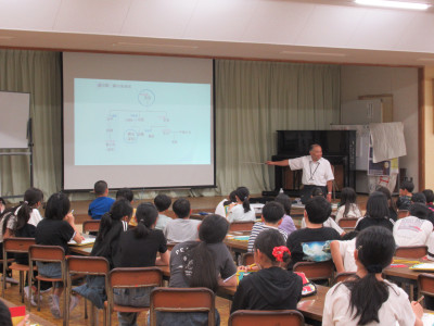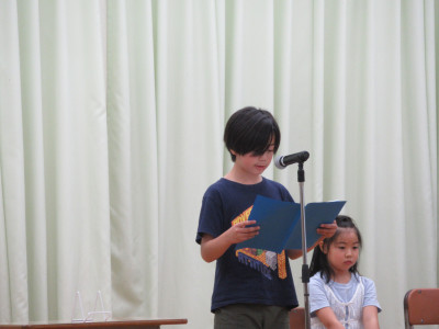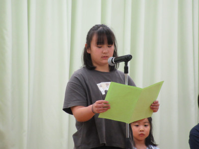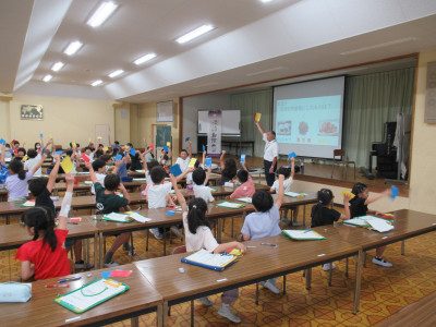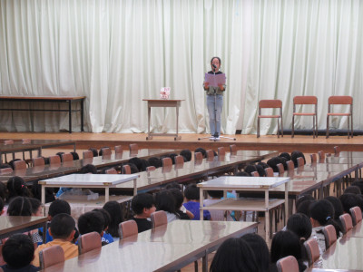 昨日、もし、クマを見かけたり、クマにあったらどうするかについて、臨時の全校集会を開きました。まず、クマの習性や特徴などを話しました。その後、クマを見かけたときに、やってはいけないこと、どう行動したらよいかを確認しました。最後に、クマにあって逃げられないときに、地面にふせる態勢を練習しました。