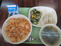 【今日の献立】キムチチャーハン・餃子・わかめサラダ・中華スープ・牛乳