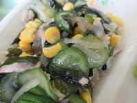 今日は、5年1組希望献立でした。ジャージャー麺は、漢字では「炸醤麺(ジャージアンミエン)」と書き、中国の北部の家庭料理である麺料理のひとつだそうです。今や、給食もグローバルです。