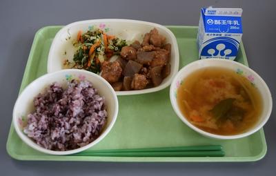 今日の福島県産発芽玄米入り十穀米には、会津産のもち米、玄米、たかきび、ハト麦などが入っていて栄養満点でした。ひとつひとつ手間ひまかけて作っていただいたすべてのメニューから、暑さに負けないパワーをいただきました。今日も美味しい給食ごちそうさまでした。