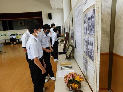 2021年6月18日 17時16分3年生の皆さんが、表郷戦争回顧展の見学に行ってまいりました。歴史の授業で戦争については学んではいますが、今回の展示資料には表郷にゆかりのあるものが数多くあり、表郷にも戦争の歴史があったことを知る貴重な機会となりました。