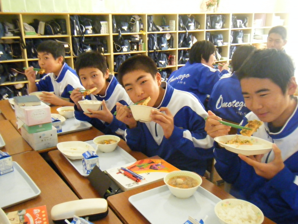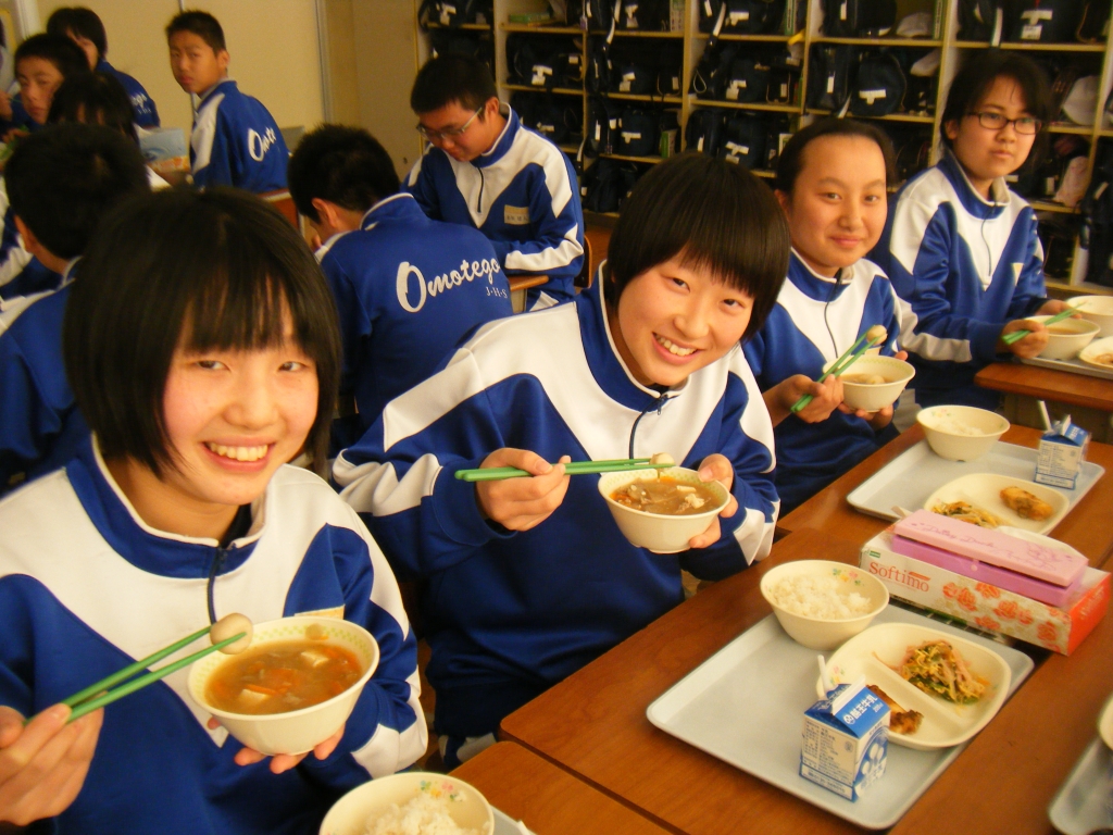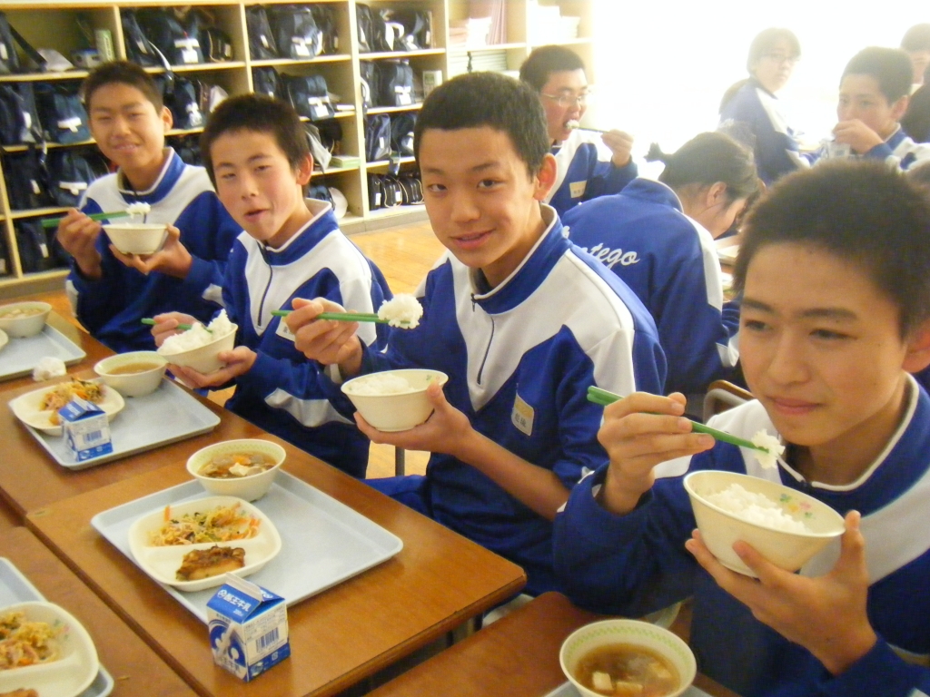 毎日の給食を男子も女子も先生も本当に楽しみにし、感謝の気持ちを込めておいしくいただいています。