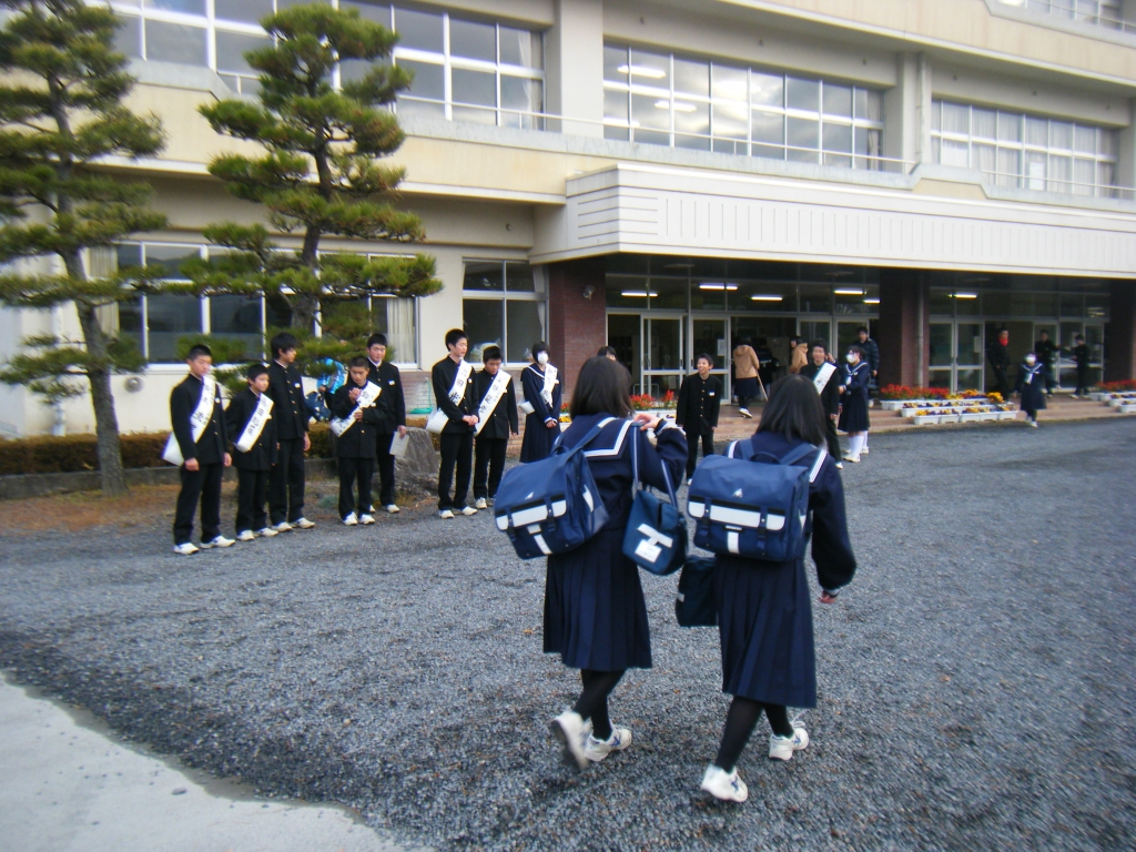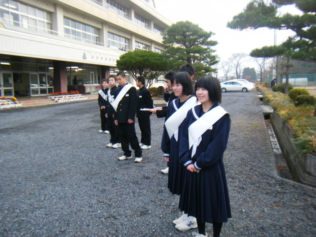 現在の表郷中学校の朝は、生徒会役員立候補者のあいさつから始まります。外に出てみると大きな声であいさつをする姿が見られます。今年はなんと17名が立候補。激戦です!!
