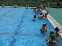 今日は1年生の授業だけでしたが、プールに入る前に体育館でルールやマナー、安全についての注意点などについて学習してからの水泳でした。そのため、水に入った時間は10分程度と短い時間でしたが。子供たちは大はしゃぎでした。
