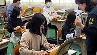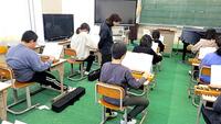 子どもたちは、大正琴の指番号が書かれた楽譜を一生懸命見ながら、集中して練習していました。