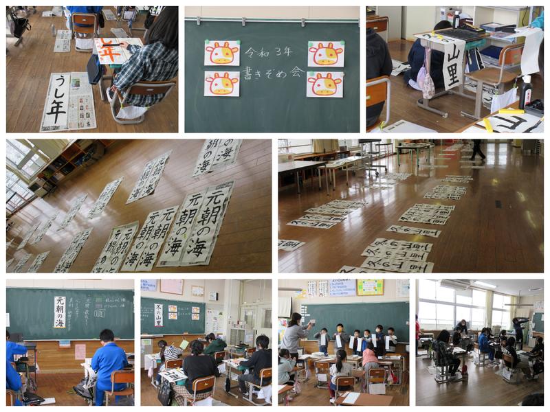 2021年1月15日 10時53分12日に校内書きぞめ会を行いました。毎年全校生で取り組んでいます。今年は感染防止対策として、開閉会式は放送で行いました。