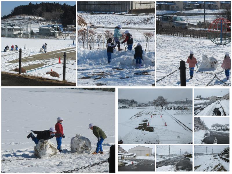 日曜日の積雪で、校舎敷地内や校舎周辺の歩道につきましては、北條農園様はじめ、地域の方々が、早朝から除雪をしてくださいました。また、保護者の皆様には、本日の集団登校の安全確保のために、自宅前や付近の通学路、集合場所等の除雪にご協力いただきましてありがとうございました。子どもたちは、安全に登下校することができました。今後とも、除雪作業へのご理解・ご協力をよろしくお願いいたします。