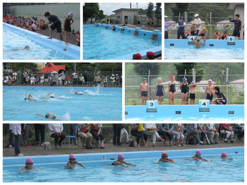 児童は、互いに「もう少しだよー!」「がんばれー!」と大きな声で応援していました。泳ぎが苦手な児童も、一生懸命に泳ぎ、得意な児童は上の学年に交ざって自由形にエントリーするなど、一人ひとりが自分の目標に向かってがんばる姿を見せてくれました。6年生にとっては、小学校生活最後の水泳記録会です。後悔のないよう泳ぎ切りました。