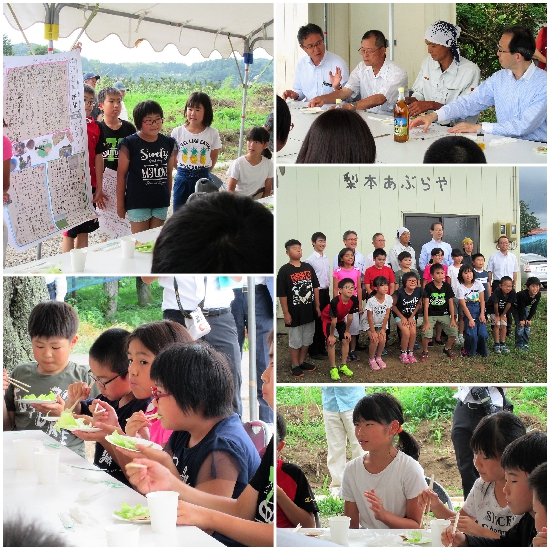 懇談では、みんなで菜種油をかけて、レタスやアスパラ、手作りクッキーを食べました。
