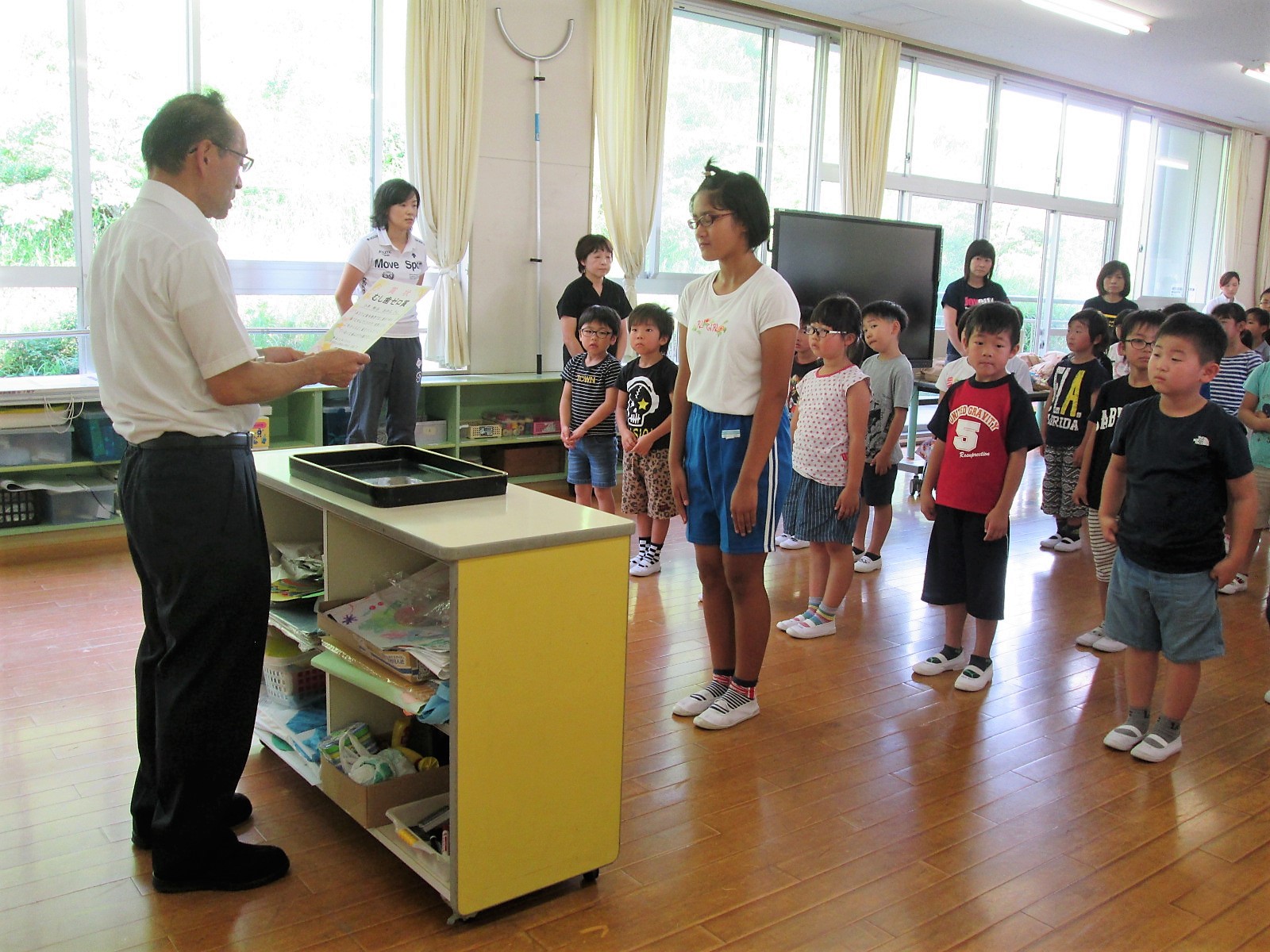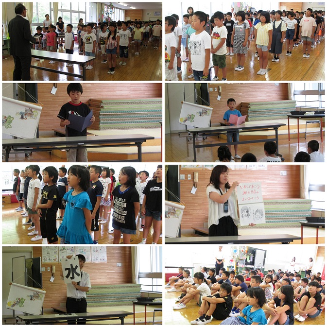 終業式では、校長先生の話や代表児童による1学期の反省の発表がありました。