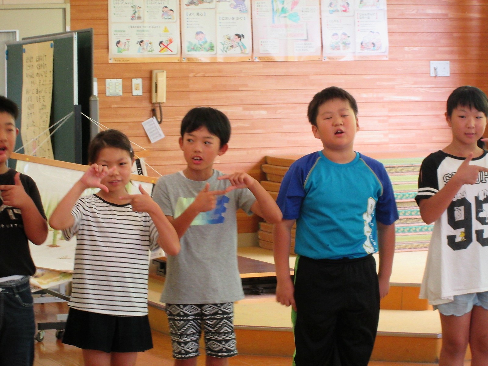 ひきざんで 数をひく など「ひく」の言葉を使って、掛け声合わせて発表しました。