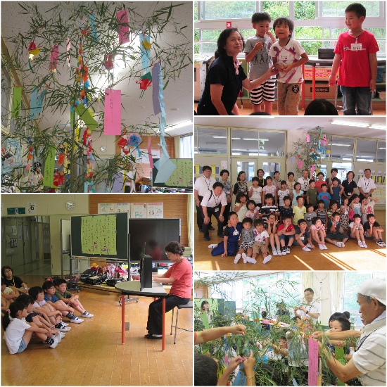 一人ひとり願い事を大きな声で発表したり、七夕様の紙芝居を聞いたりしました。