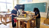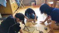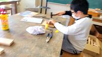 金槌を使ったり、のこぎりで切ったり、ホットガンで木と木をつなげたり~。