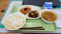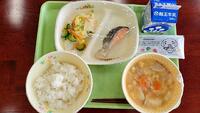 昨日の献立は、鮭の塩焼き、すいとん汁、白菜の浅漬け、味付けのり(しらかわんのイラスト付!)、ご飯、牛乳でした。