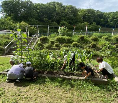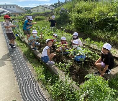 朝の時間に、畑の手入れをしている子ども達です。たいしたものです!