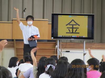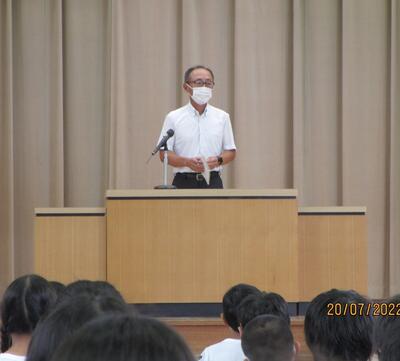 生徒指導の先生からは、夏休み中の安全な生活についてお話がありました。しっかりと守りましょう!