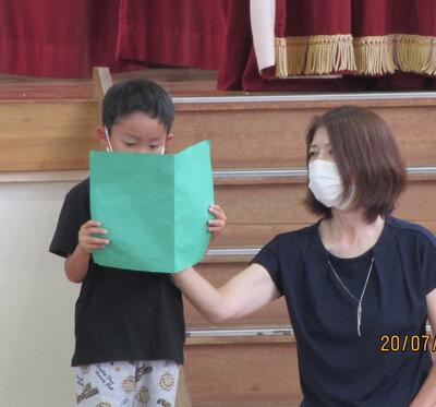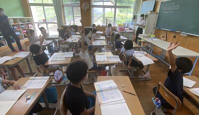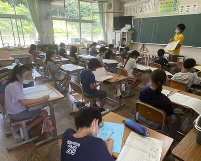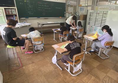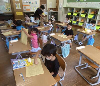 教室へ戻った1年生・なのはな・3年生は、夏休みの宿題についての説明を聞きました。