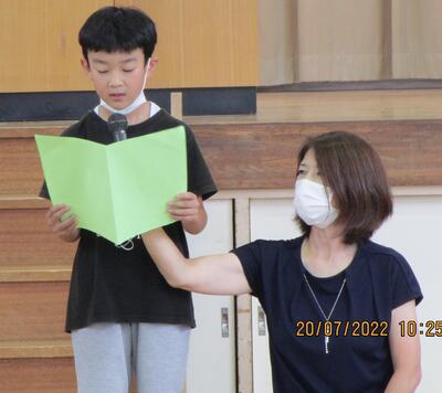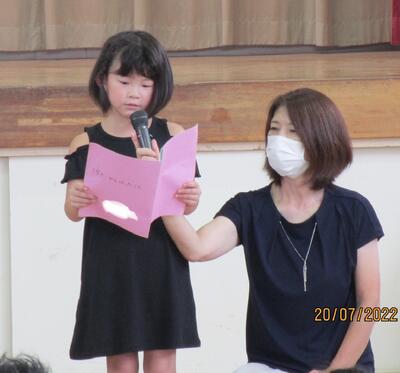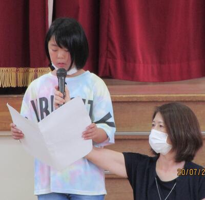 各学年代表児童が、1学期の反省と夏休みのめあてを立派な態度で発表しました!