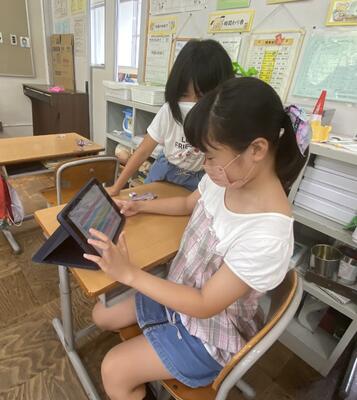 4年生はタブレットを使ってのアンケート作りを進めていました。総合の学習かな?