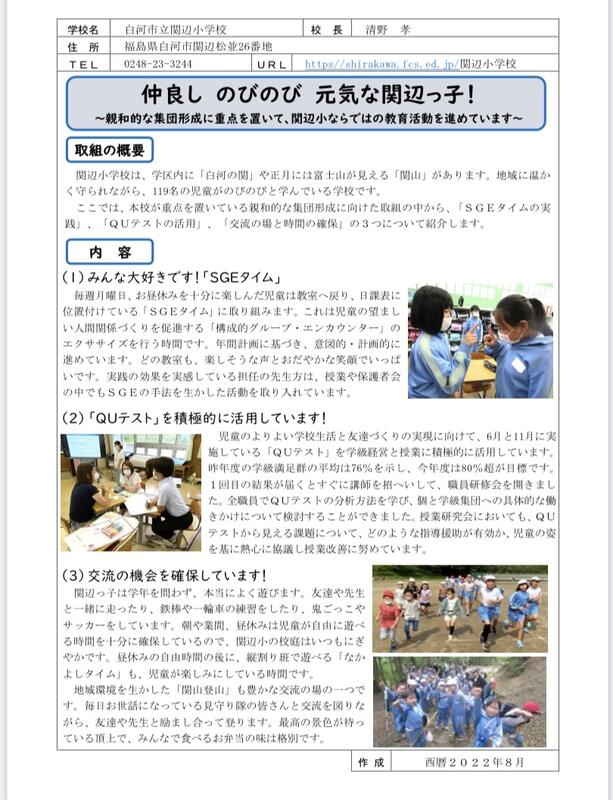 福島県のホームページ「学校自慢コーナー」に関辺小が掲載されました。ぜひご覧ください!