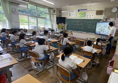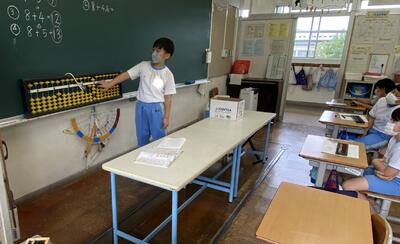 4年生は算数科でそろばんの学習です。繰り上がり・繰り下がりの考え方を話し合っていました。