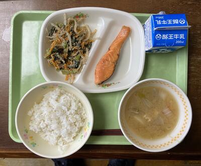 今日の給食も子ども達に大人気の「鮭の塩焼き」でした。「麦ご飯」「小松菜の胡麻和え」「豚汁」「牛乳」と、体にやさしいメニューで美味しかったです。ごちそうさまでした!