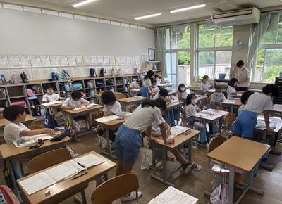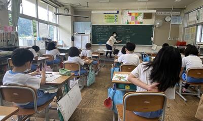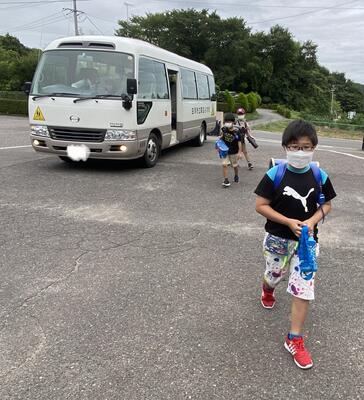 2022年8月25日 12時05分8月25日(木)、新学期4日目の登校です。スクールバスも通学班も、どんどん学校に到着しました。「おはようございます!」