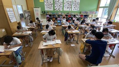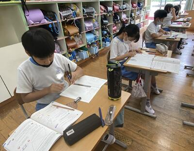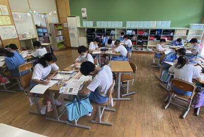 6年生は社会科で、貴族の文化について調べ学習でした。一人一人のノート文字の丁寧さに感心しました。さすが6年生!