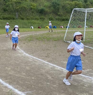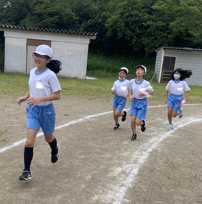 朝のランニングに取り組む子ども達!低学年なのに、多い子は10周以上走っていました。いいぞ!