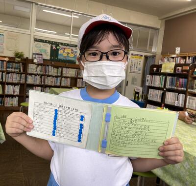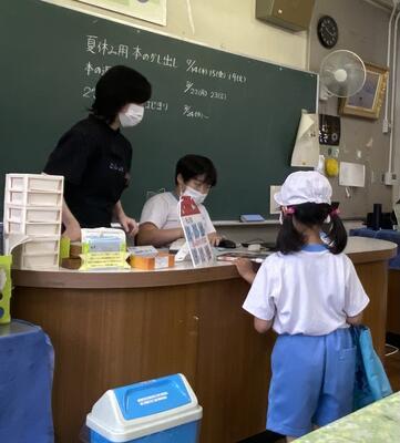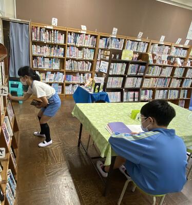 業間の図書室の様子です。司書の先生が読書環境を整えてくださっているので、多くの児童が訪れています。