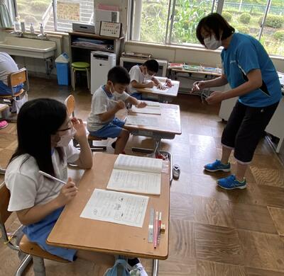 4年生は算数科で、自分で解いたわり算の商を、検算で確かめています。筆算も正確に進めることができるようになりました。すごい!