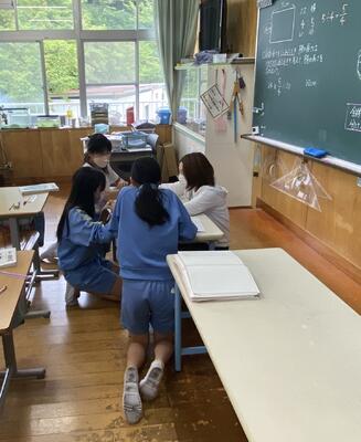6年生も算数科で、比の文章問題で、二つの考え方で問題を解きます。先生や友達と相談しながら、難問に粘り強く挑戦していました!