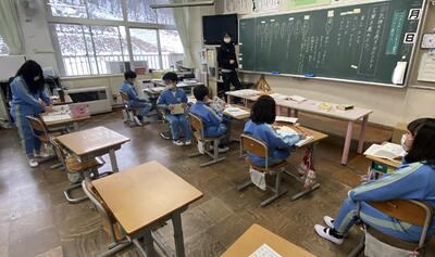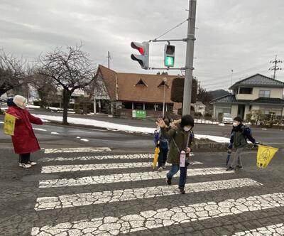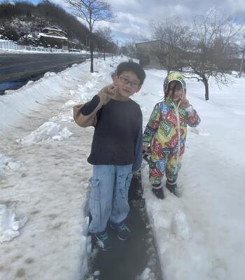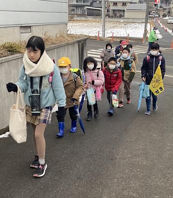 国道に行くと、1・2年生の兄妹とご両親、1年生のお婆ちゃんが通学路の雪かきをしてくださっています。ありがとうございます。