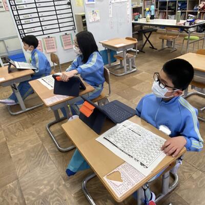 3年生は国語科で、国語辞典を使いながら言葉の学習に取り組んでいました。たくさん調べたようです!