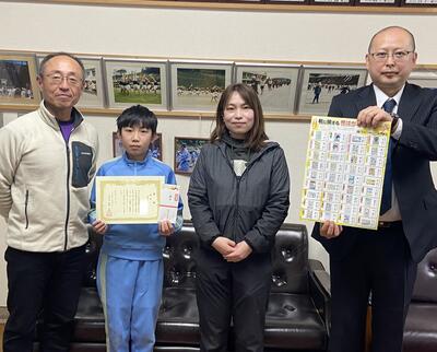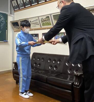 業間に、校長室で「第15回税に関する絵はがきコンクール」の表彰がありました。