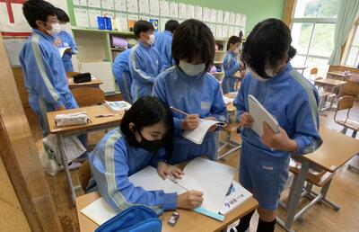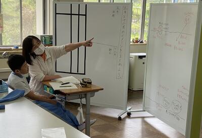 なのはなでは、6年男児が国語科「やまなし」の学習で、5月と12月を比べながら読み深めていました。