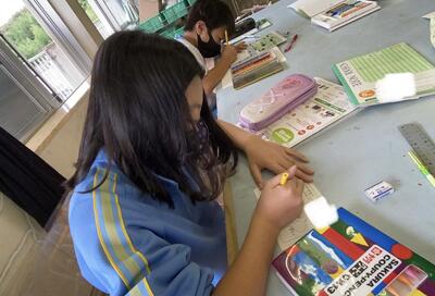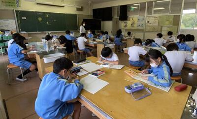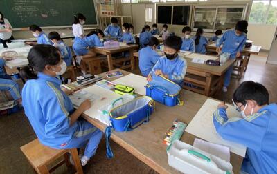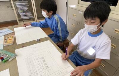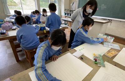 5年生は図が工作科で、水彩画に取り組んでいます。