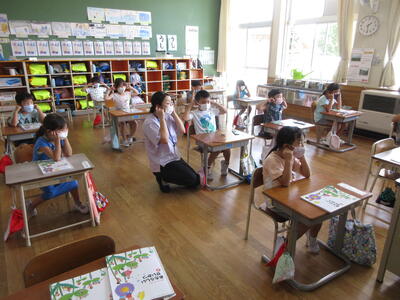 放送による全校集会で、おひさま学級担任の先生が、「聴くこと」と「思い描くこと(想像すること)」について話をしました。