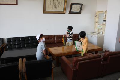 校長室を訪れると、部屋の中を前回よりもじっくり観察。改めての自己紹介も、「校長先生が好きな◯◯は何ですか?」という質問も、全員がしっかりとできていました。