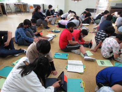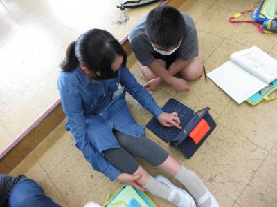 何も知らないまま臨むのと、予習をもとに自分なりの課題をもって臨むのとでは、修学旅行の成果が大きく変わってきます。タブレット端末を活用しながら調べ学習に取り組み、当日への期待と意欲を大きく膨らませる子どもたちでした。