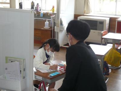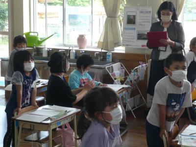 ちょっと懐かしいお顔を目にした子どもたちは大喜びでしたが、授業が始まると小学生らしい態度で学習に向かい、一人一人がんばる姿が1年教室でもひまわり学級でもおひさま学級でも見られました。