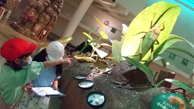 今、1~4年生が見学学習でムシテックワールドに来ています。子どもたちは、グループごとにクイズにチャレンジ中!展示してある説明をよく読んだり、模型や動画をじっくり観察したりと、目と耳と頭をフルに働かせています。みんなとっても楽しそう!
