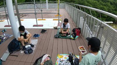 お昼は眺めのよいテラスでいただきました。おいしいお弁当に子どもたちは、大満足のようでした。