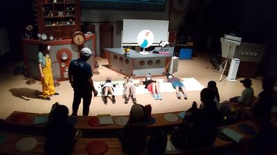 低学年は、現在サイエンスショーを楽しんでいます。ショーを進めるナビゲーターの素晴らしい話術に、子どもたちは大盛り上がり。大きな声で答えたり、驚きの歓声をあげたり…