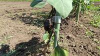 どんな野菜がどんな育ち方をするのか、これからどのくらい収穫できるのか、いろいろな疑問をもちながら楽しく学習できると思います。収穫した3つのおなすを大事そうに抱えて記念写真。「はい、チ~ズ!」