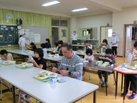 7月1日(木)、給食センター所長様、栄養教諭の田家先生、調理員さんが、給食訪問においでくださいました。3日連続、学校を応援してくださる方々の学校訪問です。なんともうれしいことです。千客万来!そんな気持ちです。幸せいっぱいの信夫二小です。