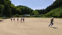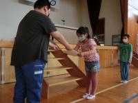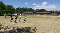 大木先生が全校児童に一人一本ずつ用意してくれたラインと、小林先生が流してくれた元気が出るポップミュージック。この2つのおかげで、楽しくも息が切れるほどの運動量を確保できる体力向上タイムとなりました。
