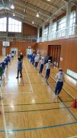 今日の業間運動「きららマラソン」は、雨のため、体育館での「リズム運動」に変更しました。「リズム運動」は、簡単にいえば一定のリズムを重視した運動のことです。体を動かすことを楽しむ心と体を育むと言われています。